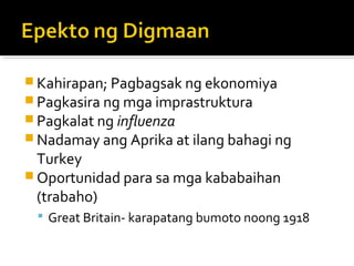 DIGMAAN SA KASALUKUYAN. Nagsimula ang World War I WW1 na ito noong ika-27 ng Hulyo 1914 matapos paslangin si Archduke Franz Ferdinand na nagsilbing tuwirang mitsa ng pandaigdigang giyera. Sa mga digmaang sibil na walang matataas na uring sandata ngunit malulupit pa rin 90 porsiyento ng mga namamatay ay mga sibilyan sa halip na.